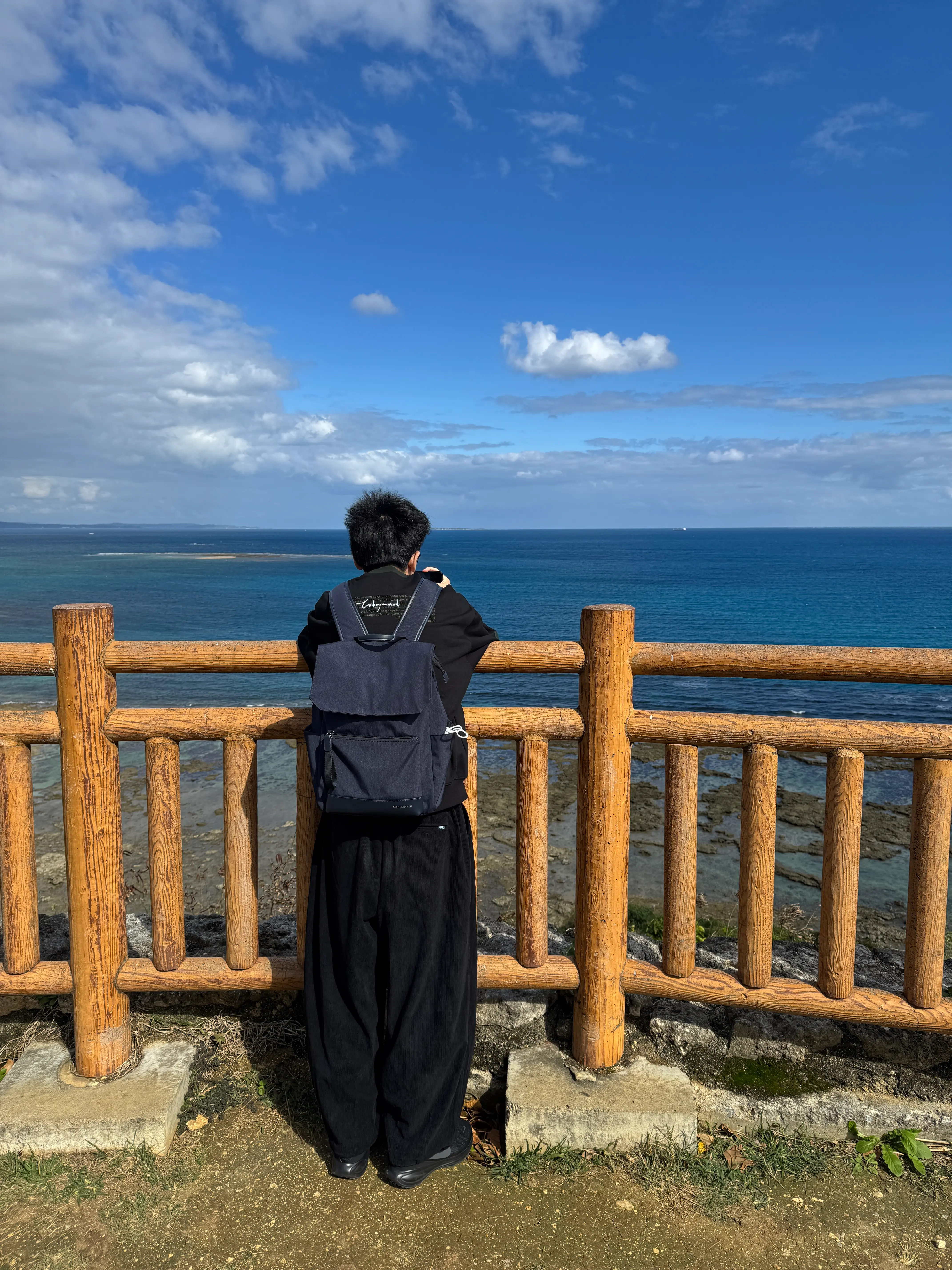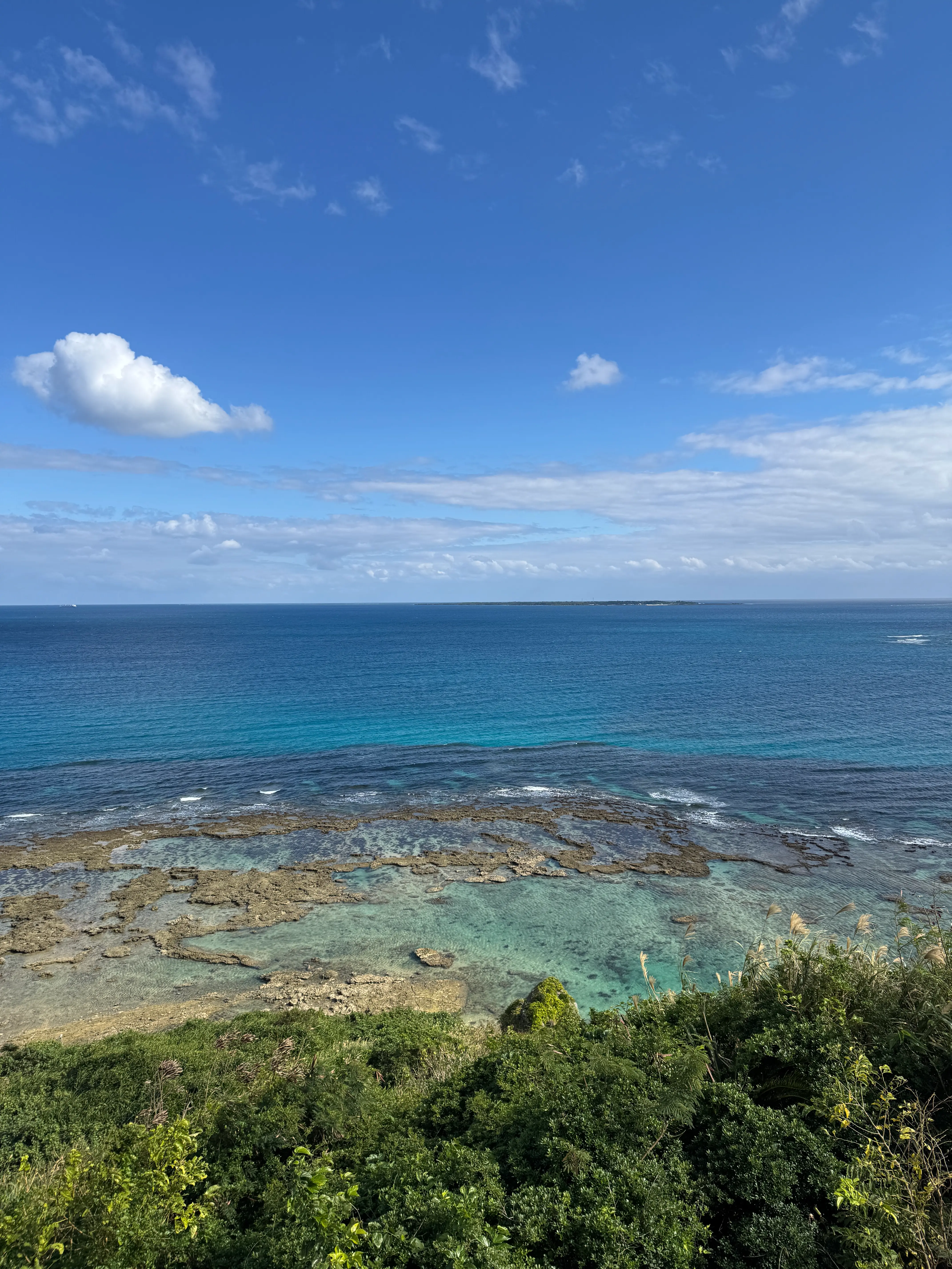 我相信冲绳应该是有很多值得去的地方,但是正因为选择太多才会在第一次来时有点为难先去哪里。本来一直念着离岛游也很馋西边的庆良间诸岛,而船是去往那里唯一的交通工具,这几天因为风太大而码头停运了,于是决定第三天租车开去公路也能到达的较近的小岛,这一天规划的路线是去东南部和南部环半岛游:那霸市——知念岬(知念岬公园)——奥武岛——濑长岛——那霸市。一边缓缓行驶一边明白过来,所谓的选择困难症或许只是心不肯松手罢了。